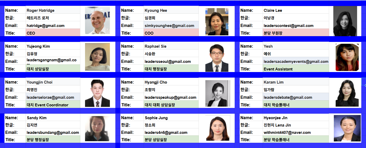 Leaders Academy was founded with one goal: to unlock potential. Our CEO, Mr. Hatridge, once coached the most successful team ever to represent Korea at the World Schools Debate Championship. Her leadership is rooted in both excellence and empathy—values that echo throughout our team.